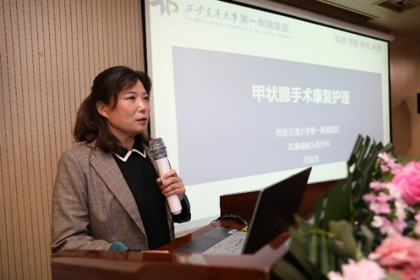4月14日,陕西省抗癌协会甲状腺癌专业委员会与核医学专业委员会再次联合开展线下患教活动,为患者提供甲状腺癌科普讲座及公益咨询。甲状腺癌专业委员会主任委员、西安交通大学第一附属医院耳鼻咽喉头颈外科主任张少强教授,在讲座中分享了如何理性看待甲状腺结节和甲状腺癌,从专业角度提醒患者正确认识甲状腺结节与甲状腺癌,避免过度恐慌,规范治疗,科学随访。西安交通大学第一附属医院耳鼻咽喉头颈外科护士长闫金凤老师,分享了甲状腺手术康复护理知识,从饮食与活动指导、伤口指导、服药指导、核素治疗、心理调节等五个方面,为患者详细讲解甲状腺癌术后康复护理内容。随后,陕西省人民医院核医学科白永利教授、陕西省肿瘤医院核医学科许建林教授,陕西省肿瘤医院惠金子、张青菊主治医师等专家共同现场答疑,为患者耐心讲解甲状腺癌核素治疗、外科手术等专业知识。希望通过此次活动提高群众对癌症预防筛查和早诊早治的认知,提升公众健康防癌意识。