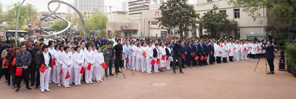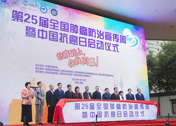 4月15日上午,第25届全国肿瘤防治宣传周暨中国抗癌日全国启动仪式在在古城西安陕西省肿瘤医院南广场隆重举行。今年宣传周主题为“抗癌路上,你我同赢”。活动由中国抗癌协会主办,陕西省肿瘤医院、陕西省抗癌协会等单位承办,支持单位包括国际抗癌联盟、中国科学技术协会科普部、中国生物技术发展中心。中国抗癌协会理事长樊代明院士、秘书长王瑛教授、副秘书长聂勇战教授、中国抗癌协会办公室主任赵文华研究员、科普宣传部部长支修益教授、副部长赵勇、科普专委会常委陈小兵教授等协会领导专家出席,中国科协科普部部长白希,陕西省政协副主席陈强,陕西省卫生健康委员会主任刘宝琴,陕西省科协党组书记、常务副主席孙科,陕西省抗癌协会理事长李树业教授,陕西省肿瘤医院院长宋张骏教授,陕西省肿瘤医院党委书记马长虹教授等出席活动。中国抗癌协会王瑛秘书长主持全国启动仪式。广大医护人员及科技工作者、社会群众、肿瘤患者、媒体代表等共800余人参加了活动。