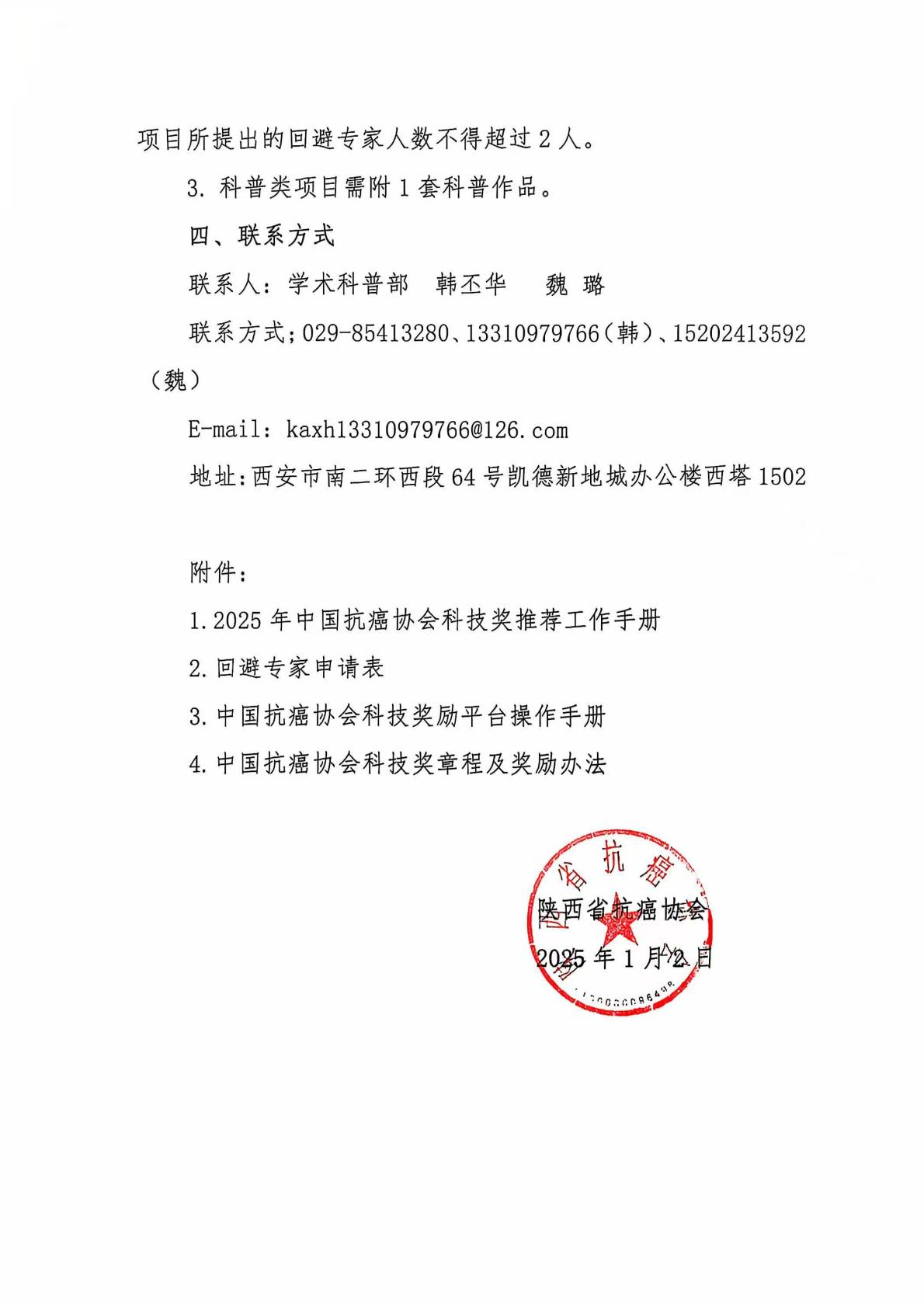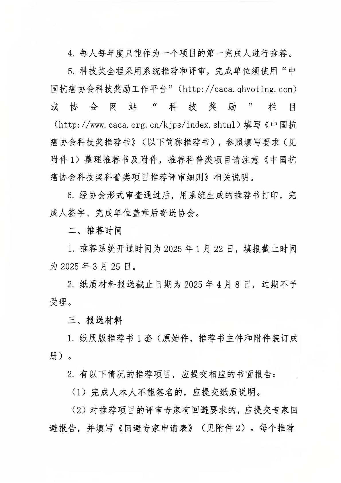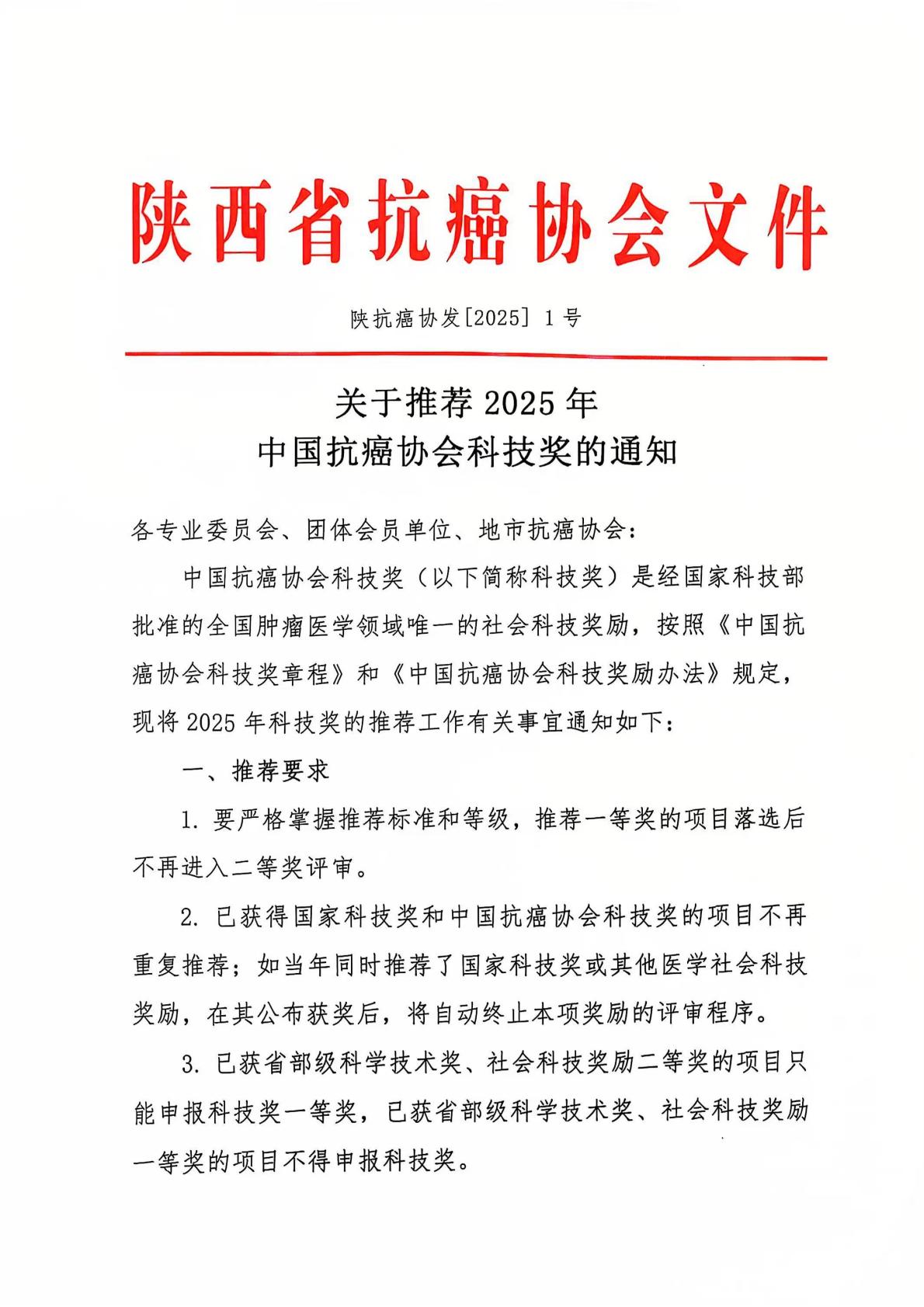 关于推荐2025年中国抗癌协会科技奖的通知