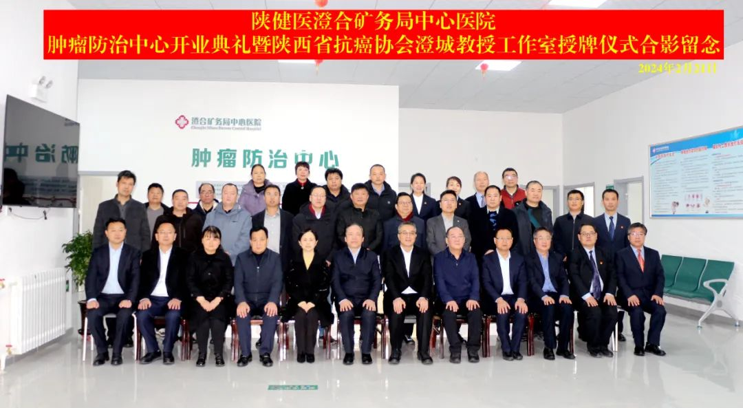 2月21日,陕健医澄合矿务局中心医院肿瘤防治中心开业典礼暨陕西省抗癌协会教授工作室澄合矿务局中心医院合作基地授牌仪式在澄合矿务局中心医院医教中心隆重举行。