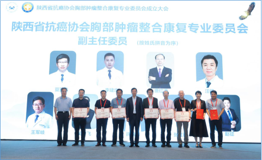 大会通过选举产生了陕西省抗癌协会第一届胸部肿瘤整合康复专委会。空军军医大学第二附属医院周勇安教授当选为第一届专委会主任委员,空军军医大学第一附属医院张红梅教授、空军军医大学第二附属医院汪健教授、西安交通大学第一附属医院吴齐飞教授、延安大学附属医院许瑞彬教授、陕西省肿瘤医院赵征教授、西安交通大学第二附属医院李建忠教授、陕西省人民医院豆亚伟教授、商洛市中心医院唐红涛教授、宝鸡市中心医院王军岐教授当选为副主任委员。同时选举产生了专委会常务委员25人,委员99人。专委会特聘请空军军医大学第二附属医院闫小龙主任为名誉主任委员,聘请张涛教授、黄立军教授、谷仲平教授、雷杰教授为顾问。