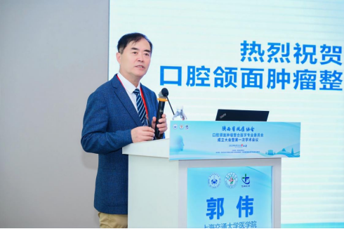 上海交通大学医学院附属第九人民医院郭伟教授代表中国抗癌协会整合口腔颌面肿瘤委员会致辞:首先庆祝专委会的成立,向各位当选的主任委员、副主任委员、常务委员、委员们表示祝贺,陕西省抗癌协会口腔颌面肿瘤整合医学专委会是国内省一级抗癌协会下属成立的第四个口腔颌面肿瘤的专业委员会,说明陕西省口腔颌面肿瘤诊治水平位于国内前列,从业人员站位较高、眼光长远,希望口腔颌面肿瘤整合医学专委会在陕西省抗癌协会的带领下,在广大委员单位的共同努力下,将陕西省口腔颌面头颈肿瘤诊治水平更进一步。