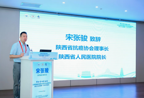 陕西省抗癌协会理事长、陕西省人民医院院长宋张骏教授致辞:首先对口腔颌面肿瘤整合医学专业委员会的成立和当选的委员们表示祝贺。希望专委会在马戈主任委员的带领下,能够积极建设、推广和运用好这一平台,提高我省口腔颌面肿瘤相关专业诊治水平,惠及广大患者。